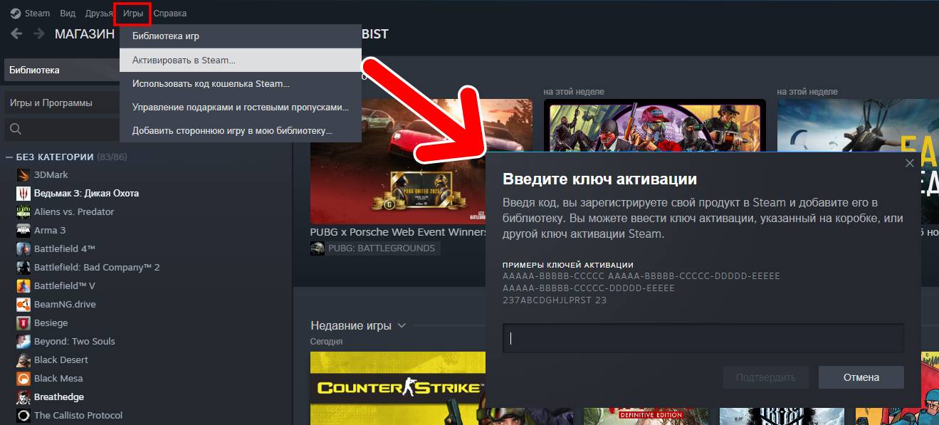 Как активировать ключ в Steam на ПК