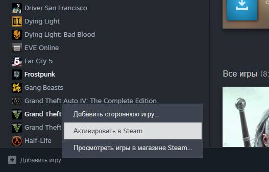 - выбери Активировать в Steam;
