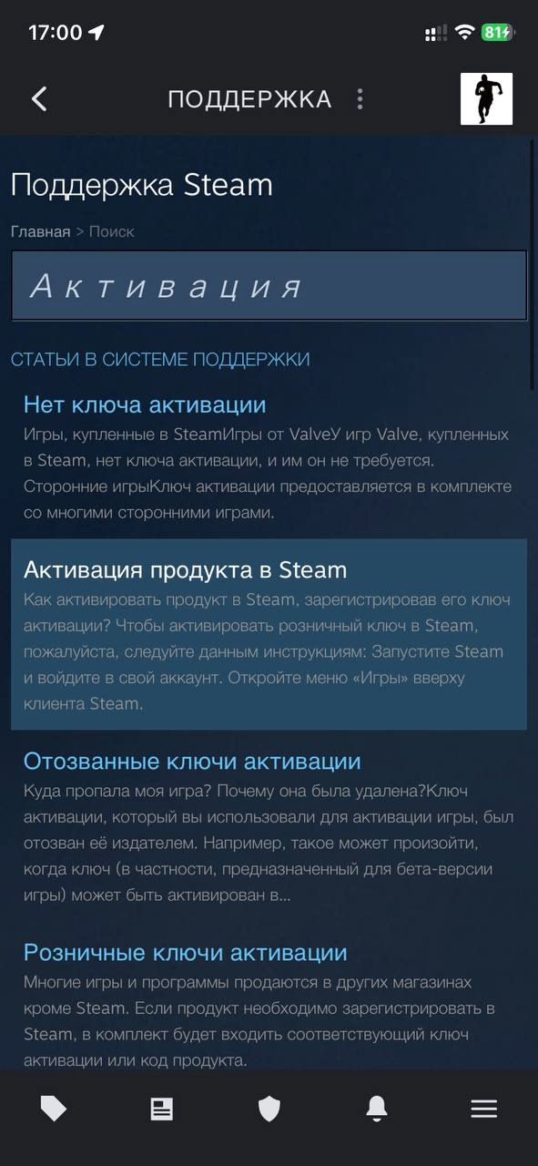 - В результатах поиска найди ссылку на статью "Активация продукта в Steam".
