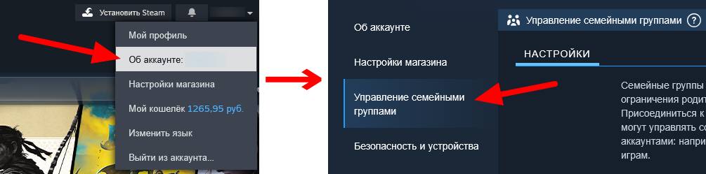 - Открыть «Об аккаунте» → «Управление семейными группами» → «Управление».